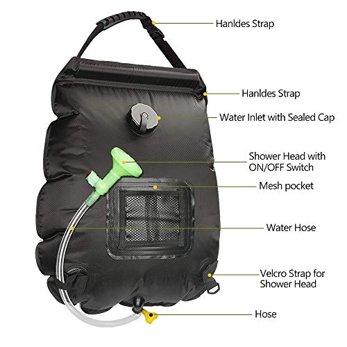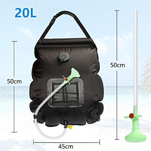 ☀【 Praktisch Hohe Wasserkapazität】:Der tragbare Duschbeutel hat eine ausreichende Wasserkapazität von 20 L. Sie wird an einem stabilen Gegenstand über dem Kopf befestigt, einem überhängenden Ast oder einem Türrahmen.Nachdem Sie Ihre Outdoor-Aktivitäten genossen haben, hängen Sie sie zum Duschen auf das Zelt oder auf Äste, oder waschen Sie einfach Ihre Hände und Ihr Gesicht.Die tragbare Camping-Solardusche eignet sich ideal für Festivalwochenenden.