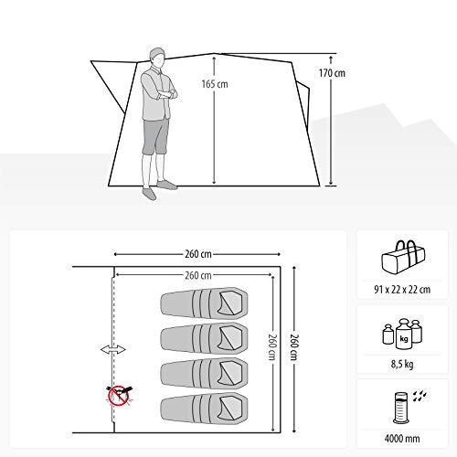 Für bis zu 4 Personen (260 x 260 cm) / kleiner, überdachter Vorbereich / Lampenhaken