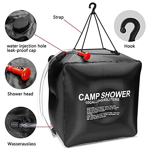 🚿[40 Liter Duschtasche zum Campen] Super großes Fassungsvermögen – eine praktische Duschtasche fasst problemlos 40 Liter Wasser und genug Wasser zum Baden. Nachdem Sie Outdoor-Aktivitäten genossen haben, hängen Sie es an ein Zelt oder einen Ast und duschen Sie oder waschen Sie einfach Ihre Hände und Ihr Gesicht, spüren Sie dann den sanften Wasserfluss und entspannen Sie sich plötzlich.