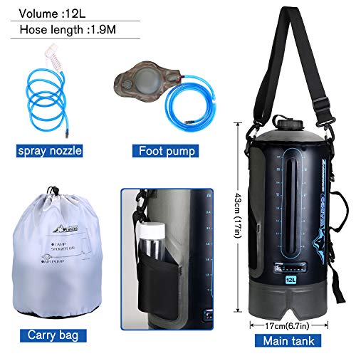 WADEO Campingdusche Solardusche Gartendusche mit Pumpe, 3 Gallonen, 12L, Duschkopf tragbare und Abnehmbarem Schlauch…