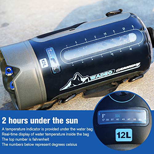 💧【12L Duschbeutel Camping】Der praktische Duschbeutel kann problemlos bis zu 12 Liter Wasser aufnehmen, die genug Wasser zum Baden aufnehmen kann. Nachdem Sie Ihre Outdoor-Aktivitäten genossen haben, hängen Sie es an das Zelt oder die Äste, um zu duschen, oder waschen Sie sich einfach Hände und Gesicht, dann spüren Sie den sanften Wasserfluss und entspannen sich plötzlich.